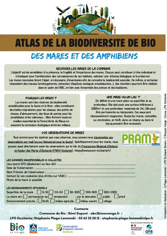 Dans le cadre de l'Atlas de la biodiversité de Bio, la LPO Occitanie se rendra dans les écoles et collèges à proximité de Bio pour sensibiliser à la Nature et valoriser le patrimoine naturel de la commune.